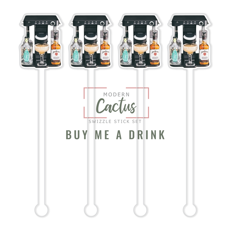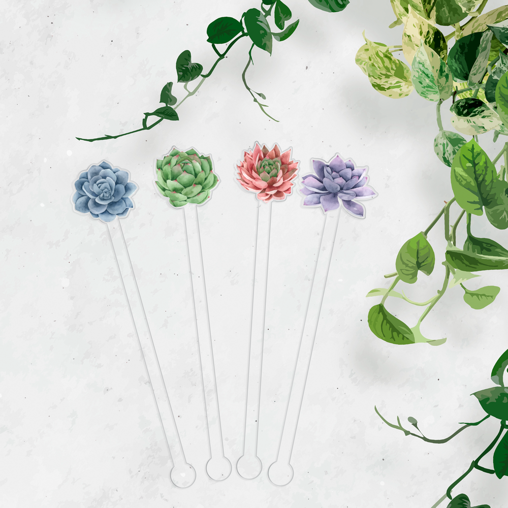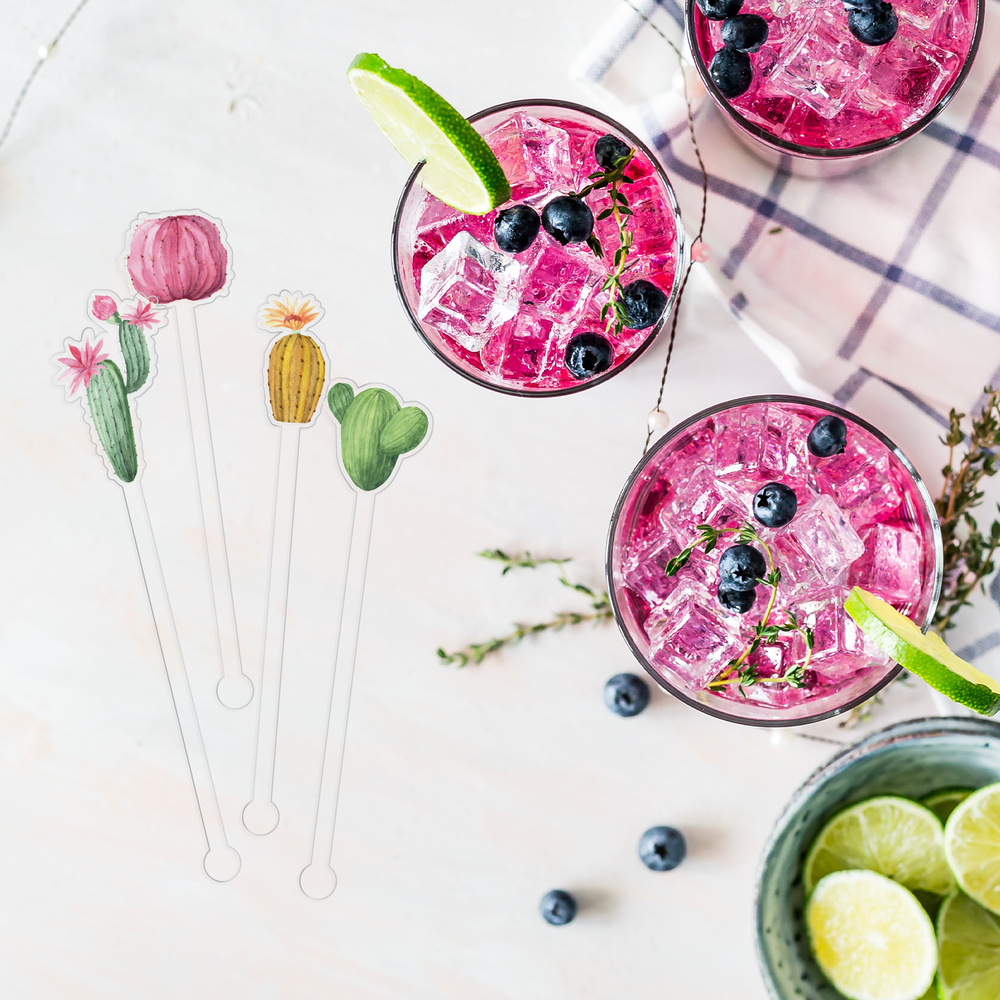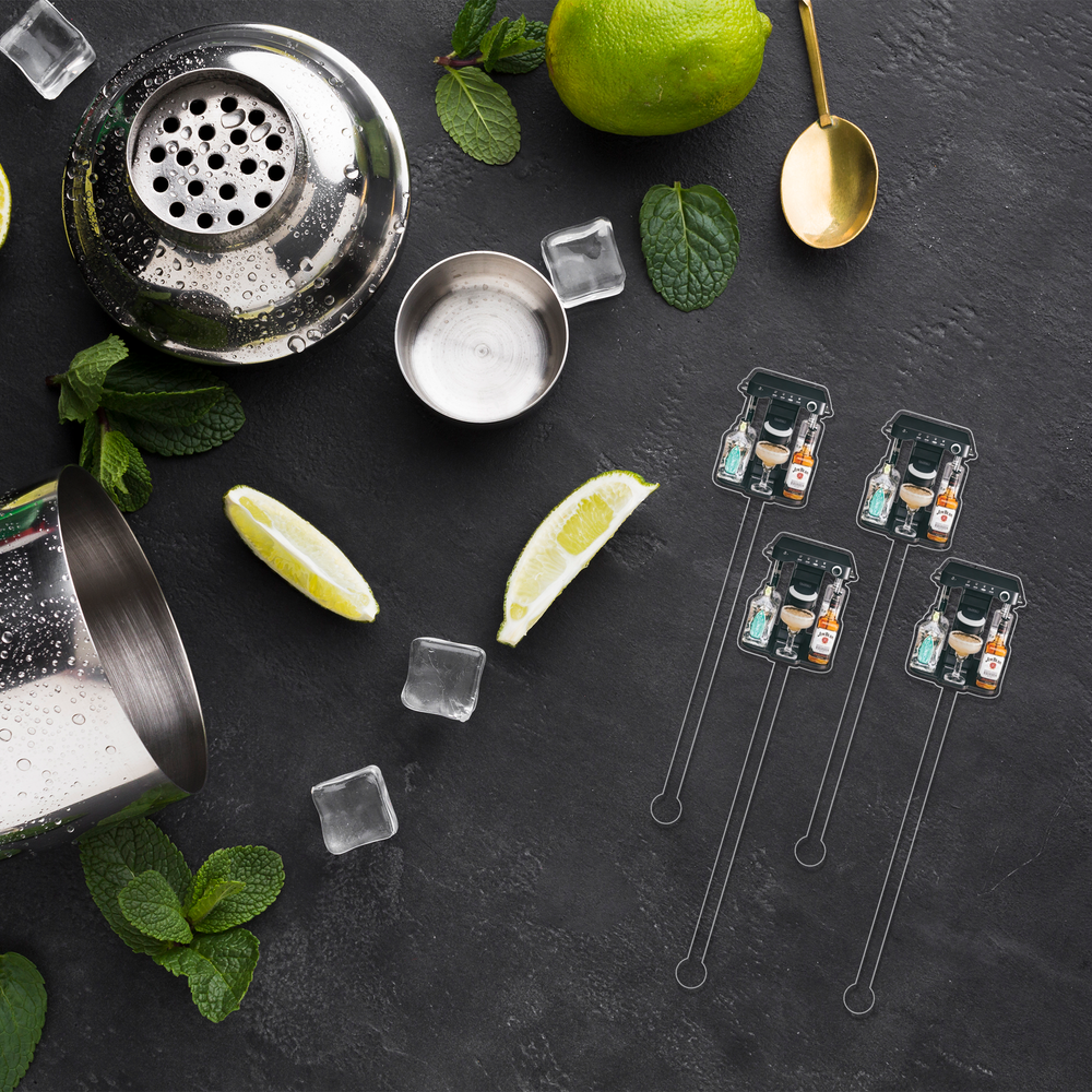 Our unique swizzle sticks are the perfect height for most glassware. The stick base is approximately 4.5" and the design adds between 1- 2" on top, for a total height of 5.5- 6.5"