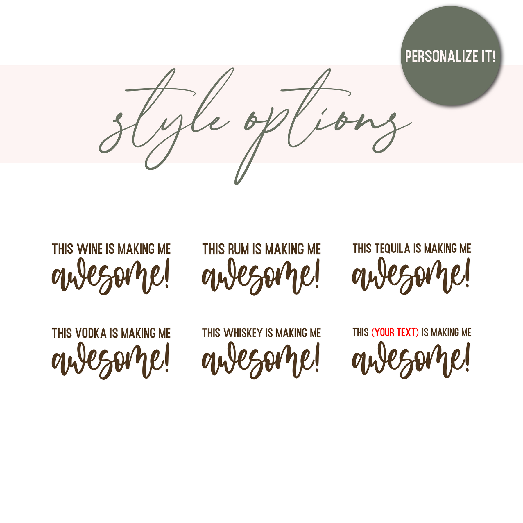 Love a different spirit? Personalize it to celebrate whiskey, vodka, rum, tequila, or whatever your favorite pour happens to be. Font will be as shown. Max of 8 characters for personalization.
